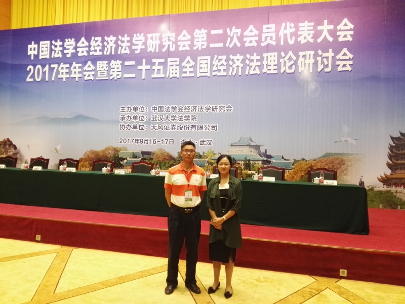 2017年9月16-17日,中国法学会经济法学研究会第二次会员代表大会在武汉美丽的东湖宾馆成功召开。经济法学研究会2017年年会暨第二十五届全国经济法理论研讨会与换届会议套开。本次会议由武汉大学新葡的京集团35222vip承办,中国法学会、湖北省委政法委、中国经济法学研究会、武汉大学等有关单位领导、专家学者300余人参加了会议。新葡的京集团35222vip彭真军教授、李丹博士参加本次会员代表大会暨2017年年会和学术研讨会。