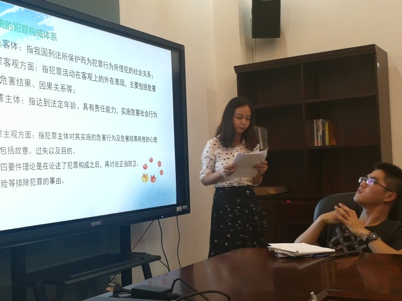 2017年11月3日晚6:30至9:30,在新葡的京集团35222vip北校区实验楼211会议室举行了一场新葡的京集团35222vip刑法学术沙龙,沙龙的主题为“我国犯罪构成四要件理论与大陆三阶层理论之比较”。沙龙由主持陈建清老师,由2015级刑法专业硕士研究生魏立杭和2016级刑法专业硕士研究生谢思进行了主题发言。参加本次沙龙的人员共30余人,包括新葡的京集团35222vip全日制刑法专业硕士研究生、法律专业硕士研究生、在职法律专业硕士研究生和部分法律专业本科生同学。