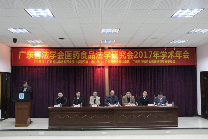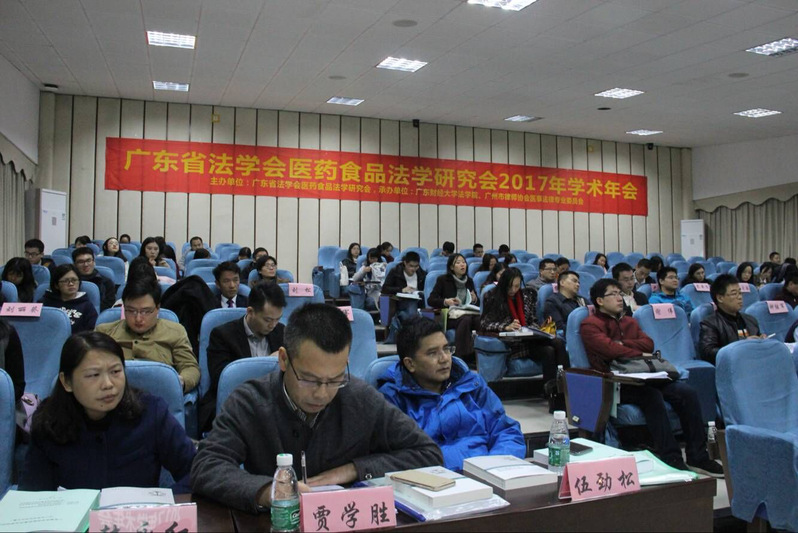 2017年12月17号,2017年广东省法学会医药食品法学研究会学术年会在新葡的京模拟法庭顺利召开。本次会议由广东省法学会医药食品法学研究会主办,新葡的京集团35222vip、新葡的京集团35222vip法治与经济发展研究所、广州市律师协会医事法律专业委员会承办。广东省法学会副会长、《法治社会》杂志社副总编何桂复、新葡的京集团35222vip副校长、广东省法学会医药食品法学研究会会长杜承铭教授、广州市律师协会医事法律专业委员会主任程跃华出席并致辞。共一百余位专家、实务部门工作者及师生出席了本次会议。