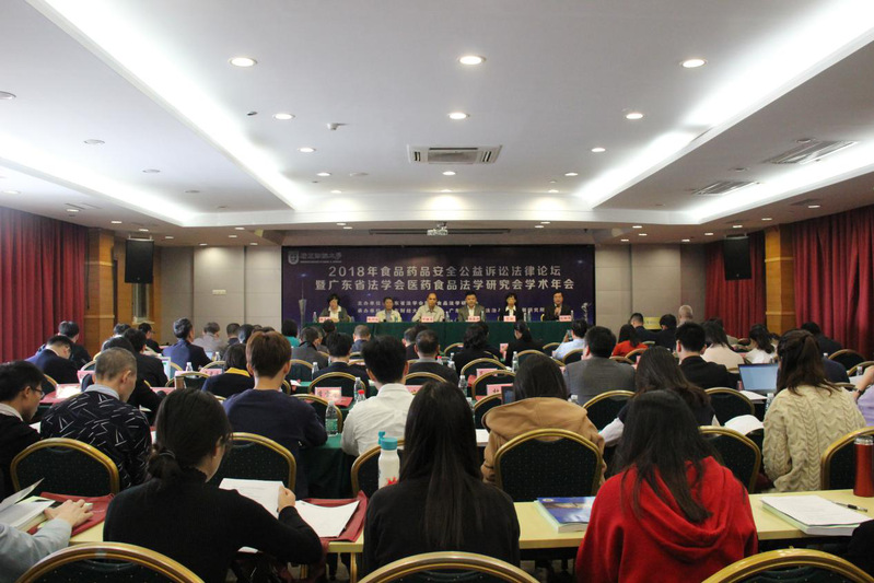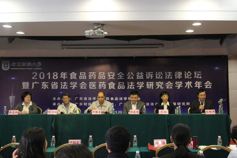 2018年11月24日,由广东省法学会医药食品法学研究会主办,新葡的京集团35222vip、新葡的京集团35222vip法治与经济发展研究所承办的2018年食品药品安全公益诉讼法律论坛暨广东省法学会医药食品法学研究会学术年会在我校顺利召开。广东省法学会副会长、《法治社会》杂志社副总编何桂复,新葡的京集团35222vip副校长、广东省法学会医药食品法学研究会会长杜承铭教授、中国民诉法研究会副会长、中南财经政法大学博导蔡虹教授、《政治与法律》主编、上海社科院法学研究所研究员徐澜波研究员等省内外共一百余位专家学者、实务部门工作者及师生出席了本次会议。