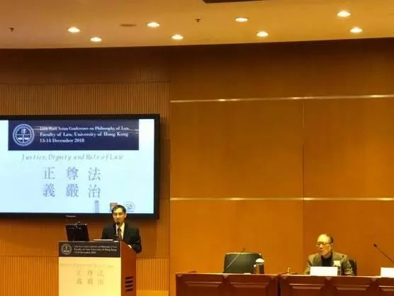 陈弘毅教授首先阐明本次会议主题“正义、尊严、法治”的内涵与意义,指出只有法治才能构建正义和尊严的社会。