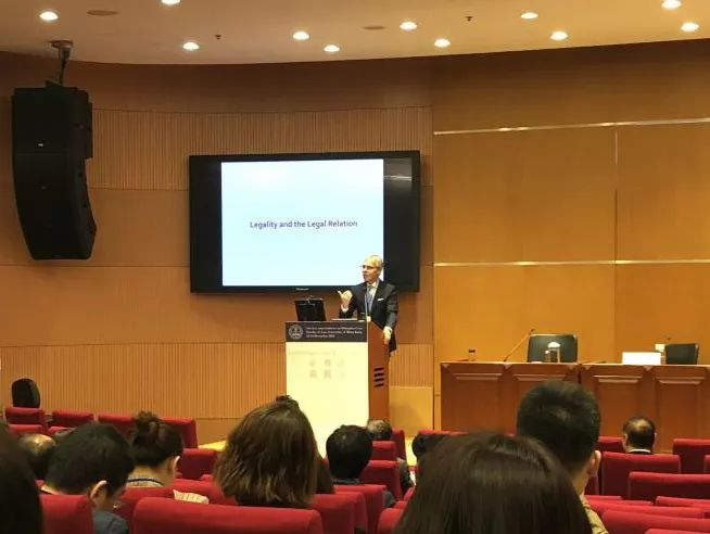 开幕式后,香港大学的Alexander Somek教授做“Law as a norm and as a relation”的主题发言,按照从实证分析到理论建构的逻辑论证法治不仅仅是一种规则,还是一种社会关系的精神。