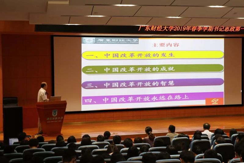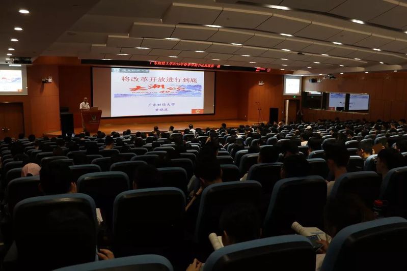 2019年4月23日下午,新葡的京集团35222vip党委书记黄晓波在广州校区图书馆正心堂以“将改革开放进行到底”为题,向新葡的京集团35222vip师生讲授形势与政策“开学第一课”,整个授课过程大力弘扬改革开放精神,激荡着将改革开放进行到底的强大力量。