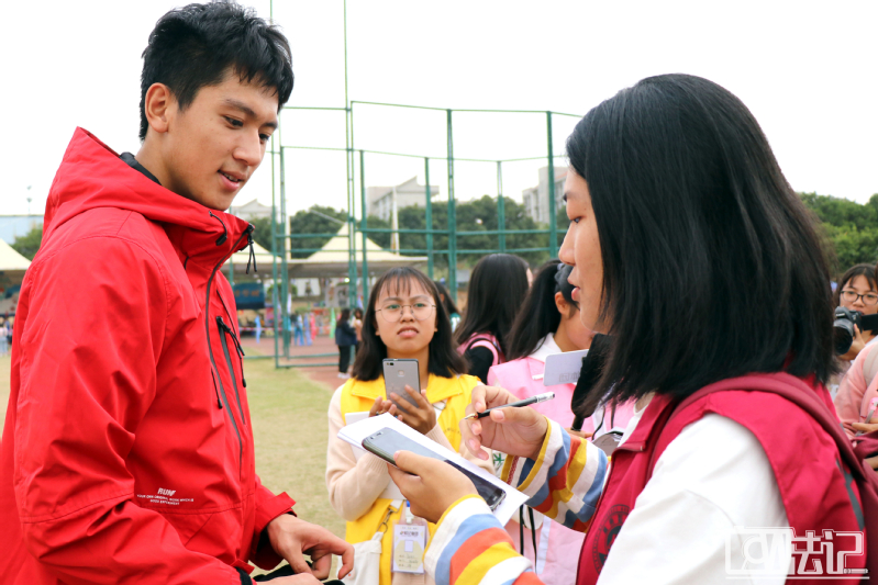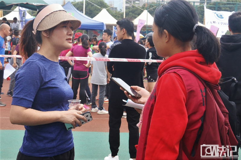 在随后的比赛中,我们有幸采访到了参加女子1500米比赛的19级研究生彭夕晏。她曾是14级新葡的京集团35222vip本科生,同时在过去也是新葡的京集团35222vip部门的干事,这让我们倍感惊喜。她跟我们分享了许多比赛中的小插曲,她说起田径赛过程中她大意撞了前排的朋友,还顺口为那位朋友鼓劲的趣事,大家也笑逐颜开,让人不禁感慨那一声简短有力的“加油”无不传递着“友谊第一,比赛第二”的精神。同时她也表示希望用运动来展现校园生活的风采,诠释自己与广财新葡的京集团35222vip的缘分,更是表达对新葡的京集团35222vip蓬勃发展的祝福。