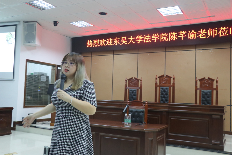 2019年10月24、25日,东吴大学交流宣讲会分别于佛山三水校区励学楼106教室及本部模拟法庭内顺利举行。宣讲会的主讲嘉宾是东吴大学新葡的京集团35222vip陈芊谕老师,房文翠院长、刘薇老师以及王龙老师出席本部场宣讲会,孟国碧副院长、18级辅导员郑欣颖老师出席三水宣讲会,学院本科生及研究生积极参与。