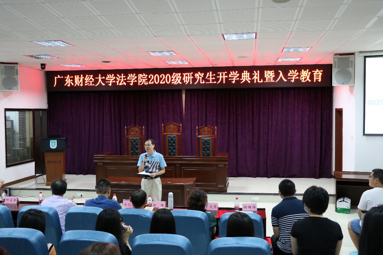 2020年9月18日上午10点,新葡的京集团35222vip2020级研究生开学典礼在实验楼模拟法庭准时召开。典礼由新葡的京集团35222vip副院长谢雄伟教授主持,新葡的京集团35222vip院长房文翠教授、新葡的京集团35222vip党委书记袁东卫、副院长谢雄伟教授、副院长鲁晓明教授、法治与经济发展研究所副所长邓立军教授、朱孔武教授、钟立国教授、谢伟副教授、丁朋超老师、徐素芳老师、何伟俊老师、新葡的京集团35222vip研究生辅导员曾蓉老师以及218名研究生新生出席典礼。