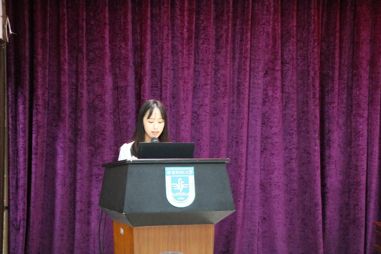 新生代表吴冰燕同学代表全体新生向学校和学院表示了感谢,她表示要好好规划自己的大学生活,不断奋斗,并勉励同学们奋发图强,学有所成。