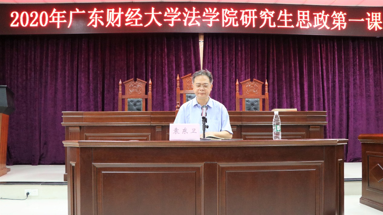 2020年10月10日13点整,新葡的京集团35222vip2020级研究生思政第一课在实验楼模拟法庭准时召开。会议由新葡的京集团35222vip党委书记袁东卫书记主持,新葡的京集团35222vip副院长谢雄伟教授、新葡的京集团35222vip研究生辅导员曾蓉老师、全体党员、2020级党团学干部以及2020级班委均参加了本次会议。