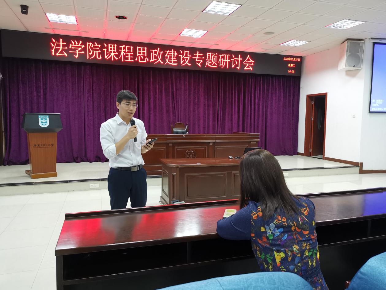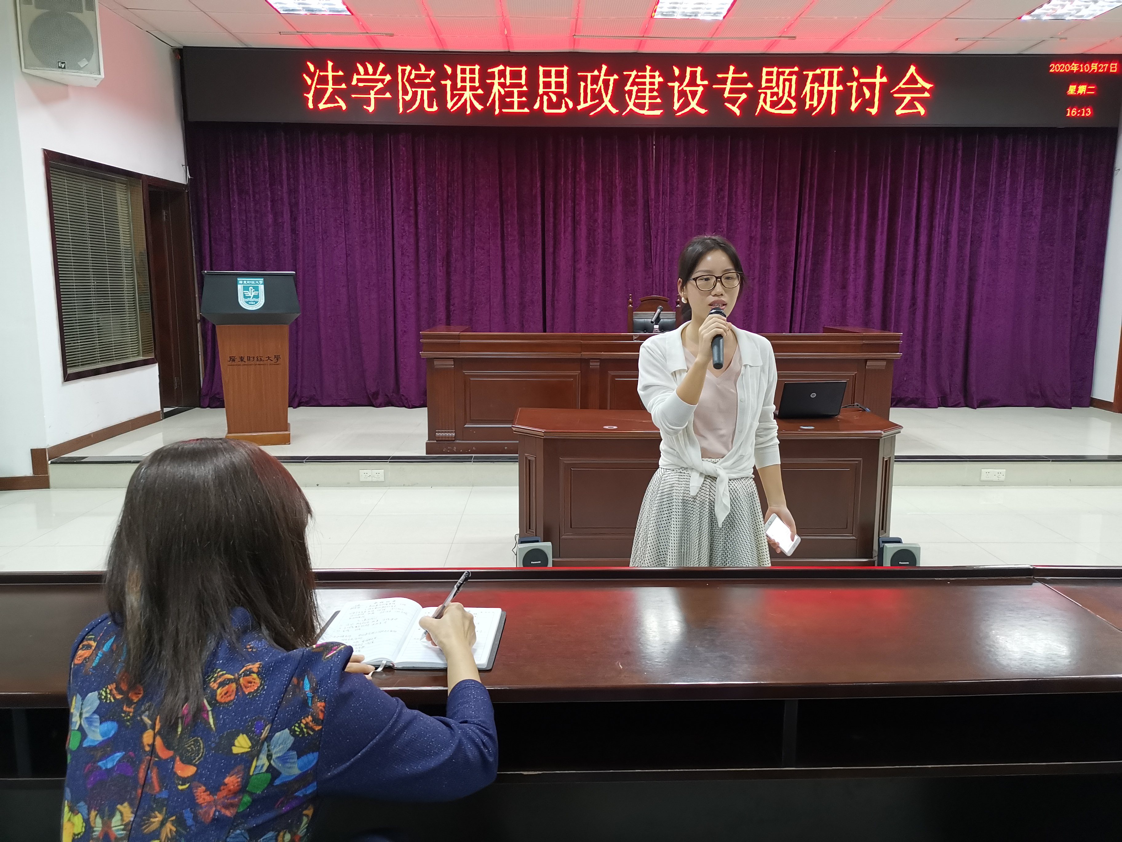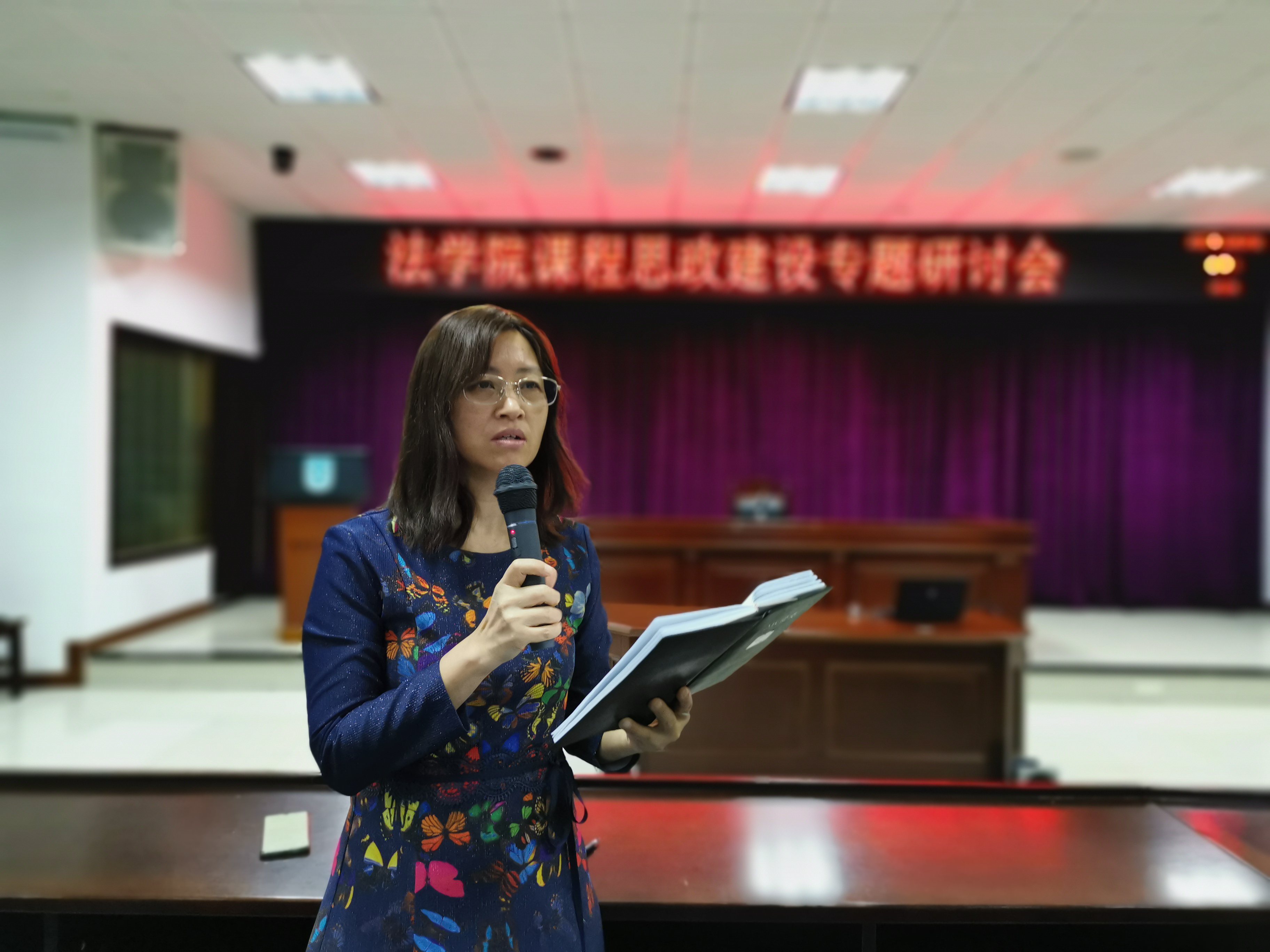 研讨会共分为三个阶段,第一阶段,由孟国碧副院长向老师们传达《教育部关于印发<高等学校课程思政建设指导纲要>的通知》(教高〔2020〕3号)等课程思政建设文件的精神,学校《关于开展课程思政与思政课程建设专项活动的通知》(粤财大教〔2020〕83号)关于课程思政建设的安排和要求,全院老师一起学习两个主要通知的内容,充分理解法学专业和法学课程思政建设的目标和要求、建设的内容和重点、如何科学设计课程思政教学体系,如何将课程思政融入课堂教学建设的全过程、如何提升教师课程思政建设的意识和能力、建立健全课程思政建设质量评价体系和激励机制、加强课程思政建设组织实施和条件保障等。明确课程思政建设的指导思想、活动目标、专项活动。