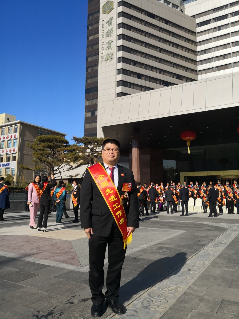 11月24日上午,全国劳动模范和先进工作者表彰大会在北京人民大会堂隆重举行。中共中央总书记、国家主席、中央军委主席习近平出席大会并发表重要讲话,代表党中央、国务院,向受到表彰的全国劳动模范和先进工作者表示热烈的祝贺,向为改革开放和社会主义现代化建设作出突出贡献的我国工人阶级和广大劳动群众致以诚挚的问候。上午10时,大会开始,全体起立,高唱中华人民共和国国歌。王沪宁宣读了《中共中央、国务院关于表彰全国劳动模范和先进工作者的决定》,我校新葡的京集团35222vip2001届国际经济法校友黄海钦同志被授予“全国先进工作者”荣誉称号。