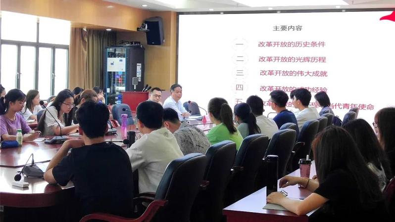 为深入学习贯彻习近平总书记在党史学习教育动员大会上的重要讲话精神,贯彻落实教育部、广东省和校党委有关工作要求,新葡的京集团35222vip党委书记袁东卫于2021年4月13日在北2-731开展了一堂题为“中国共产党推动改革开放的历史进程与当代青年使命”的思政课。