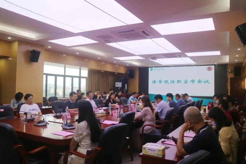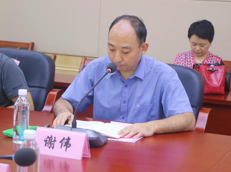 随后,谢伟副院长发表讲话。他感谢学校党委的信任与认可,也感谢各位领导同事的支持与帮助,传达出三点表态,一是坚定正确的政治方向,二为工作上勤勉认真,三即保证生活作风严谨,并表示自己将会为建设一流的粤港澳大湾区财经大学法院贡献力量。