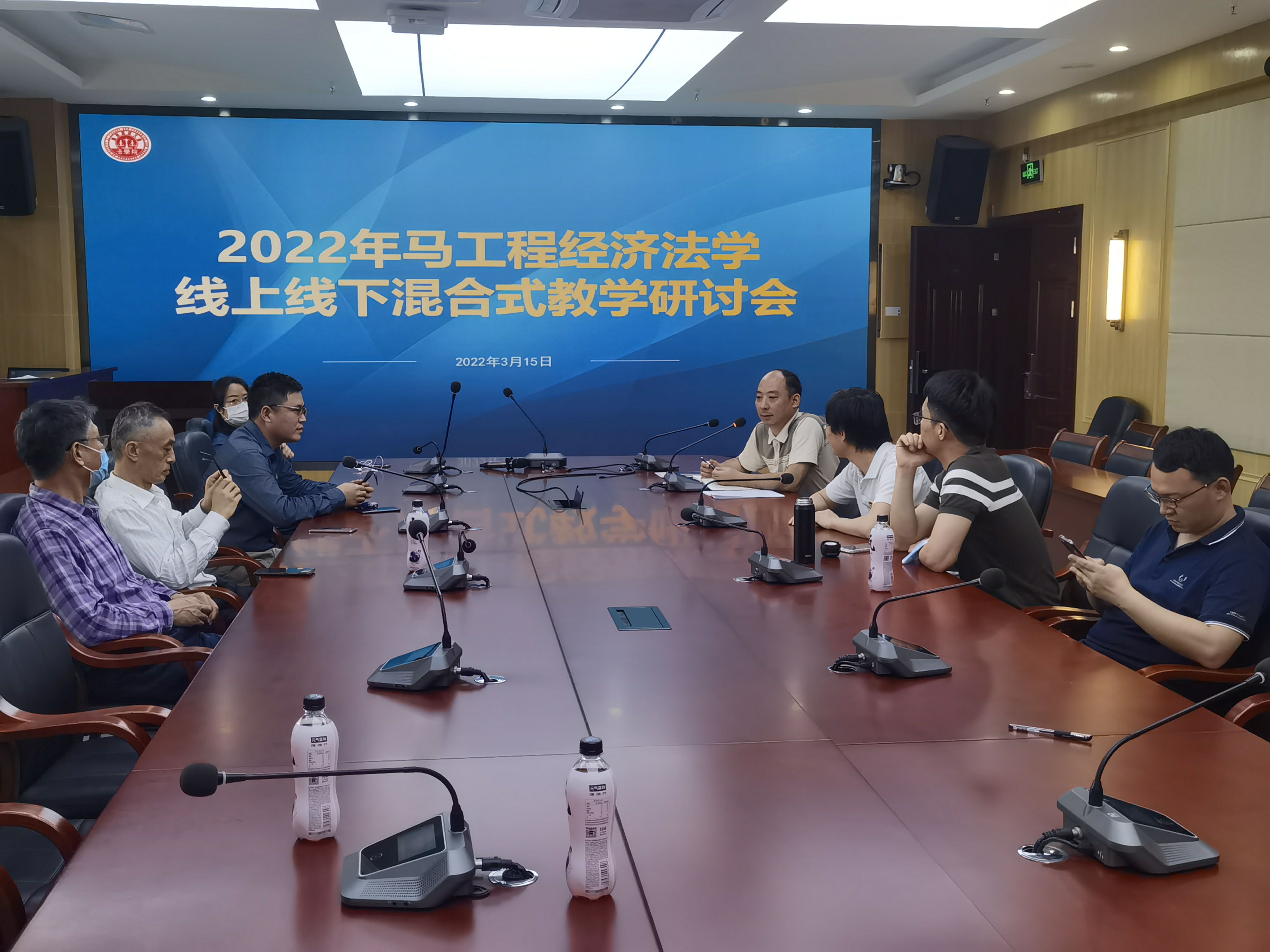 2022年3月15日下午,新葡的京集团35222vip经济法教研室会议在第一会议室召开,会议主题是马工程经济法线上线下混合式教学研讨。会议由新葡的京集团35222vip副院长谢伟教授主持,经济法教研室主任刘芮博士,经济法教研室彭真军教授、张少峰副教授、何缨副教授等参加了研讨会。