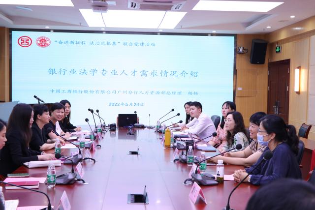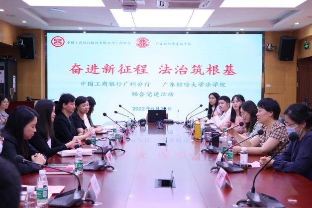 2022年5月24日下午,新葡的京集团35222vip联合中国工商银行股份有限公司广州分行在新葡的京集团35222vip第一会议室开展了“奋进新征程、法治筑根基”联合党建活动。