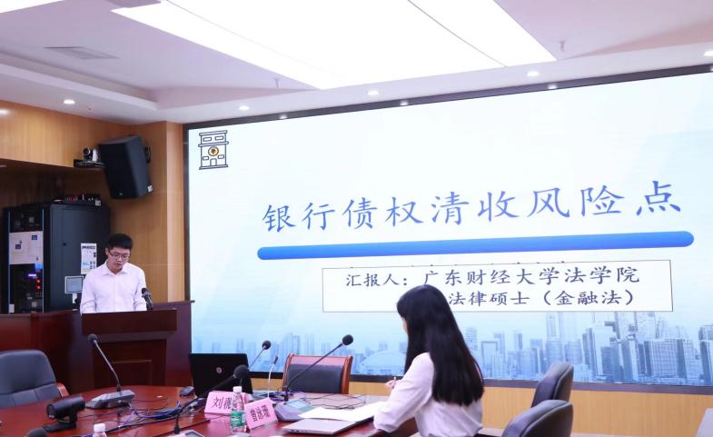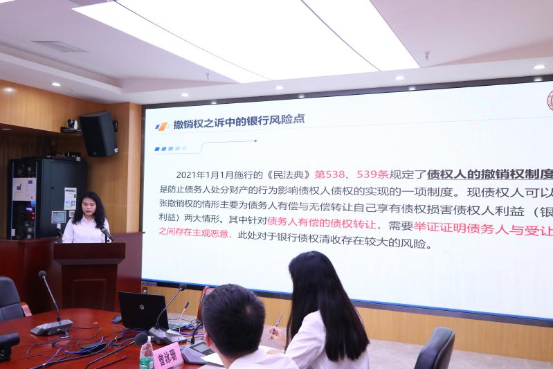 党建活动第二项议程,由新葡的京集团35222vip2021级金融法律硕士研究生陈乾、曾泳珊、钟雪娇、黄威、郑明航、黄裕文等同学就“银行债权清收风险点”做主题分享。