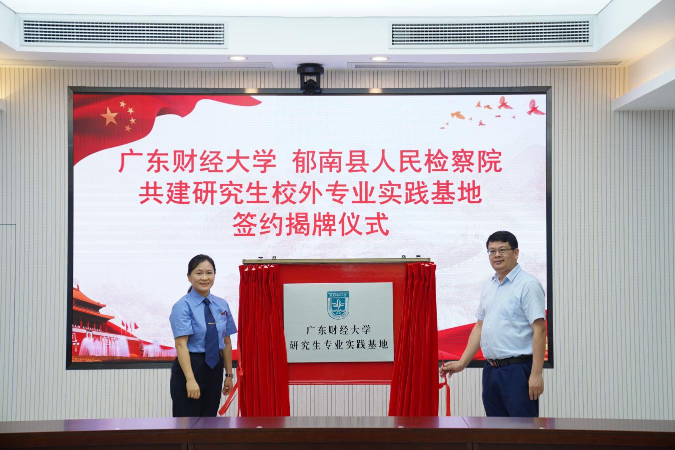 此后鲁晓明院长、陈砾检察长代表检校双方共同签署检校共建研究生专业实践基地协议书,在人才培养、资源共享、案例研究、课题攻关等多个方面达成合作共识,并共同为研究生校外专业实践基地揭牌。