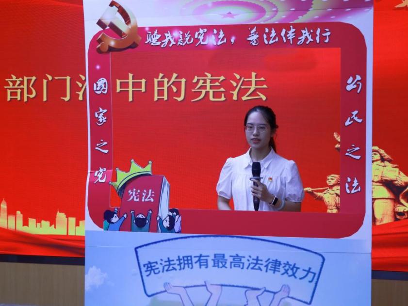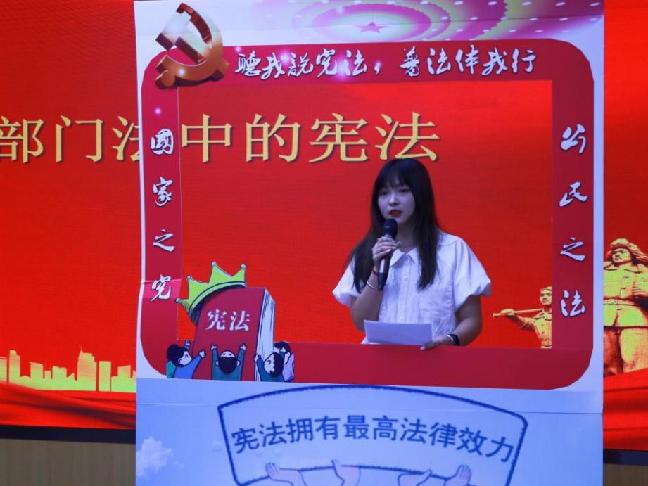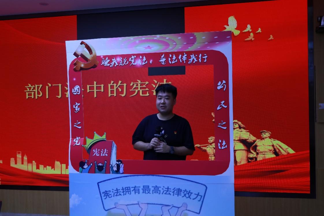 在活动第三个环节,新葡的京集团35222vip宪行法理研究生党支部的党员同志结合法学专业特色,从民法、刑法、行政法、商法、劳动保障法、婚姻法等部门法出发,落脚到我国宪法的条文,结合生活实际,用生动有趣的故事向大家讲述部门法律中的宪法。贴近大家日常生活的实例小故事引起了大家的兴趣,会计学院研究生第一党支部的郑梓龙同志和会计学院研究生第二党支部的王菁同志积极参与了互动,在思想交流碰撞中更加明晰了法治精神、法治思维、法治方式。