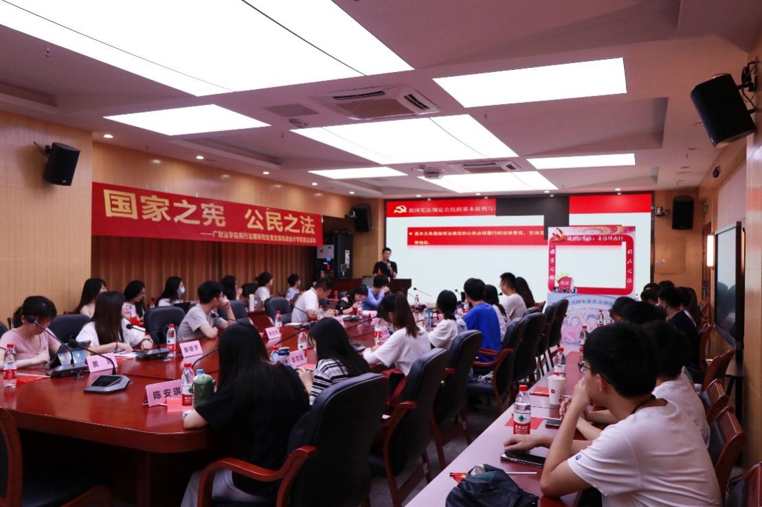 2022年7月1日,为庆祝中国共产党成立101周年,教育引导新葡的京集团35222vip党员不忘初心、牢记使命,深入学习贯彻广东省第十三次党代会精神,大力弘扬宪法精神、加强宪法宣传教育,推进“一支部一特色”党建品牌创建,促进新葡的京集团35222vip与会计学院研究生党员的交流与互动,新葡的京集团35222vip宪法学与行政法学专业、法理学专业研究生党支部在北二731会议室举办了“国家之宪、公民之法”走进会计学院普法活动。新葡的京集团35222vip宪行法理专业研究生党支部、会计学院研究生党支部、新葡的京集团35222vip各专业研究生党支部支委会成员、新葡的京集团35222vip新发展研究生党员以及会计学院、新葡的京集团35222vip团学组织骨干参加本次活动。