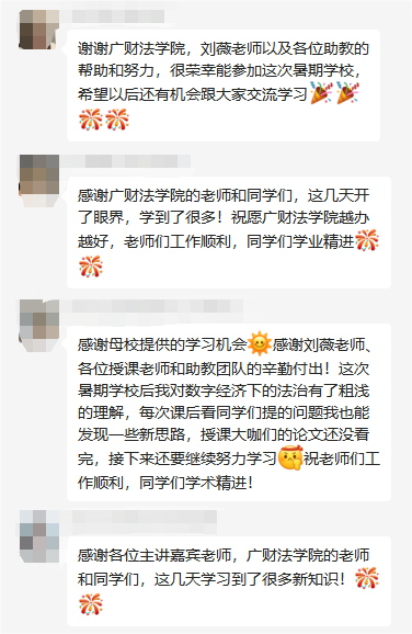党的十八大以来,我国加快建设网络强国、数字中国、智慧社会,从国家层面部署推动数字经济发展,取得显著成就。本次研究生暑期学校课程设置积极回应国家发展战略,培养研究生前沿性思维和多元的视野,2022年新葡的京集团35222vip“数字经济与法治”研究生暑期学校圆满结束,作为研究生提前培养的重要环节,尤其希望2022级研究生新生同学能够开阔视野、继续在数字经济与法治领域不断探索,深入思考,学以致用,更加全面提升自身法律素养!