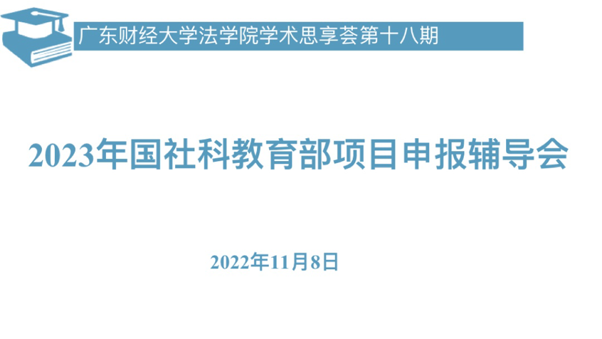 2022年11月8日,新葡的京集团35222vip举办了“学思践悟二十大,奋进法治新征程”学术活动月之“学术思享荟”第十八期:2023年国社科/教育部项目申报辅导会线上会议。本轮辅导会议按项目申报书的主题分为三组,第一组由孙占利教授和姚志伟教授进行指导;第二组由童之伟教授和戴激涛教授进行指导;第三组由冉昊教授和邓立军教授进行指导。学院23位青年骨干教师向院内组织的专家团队递交了申报书。