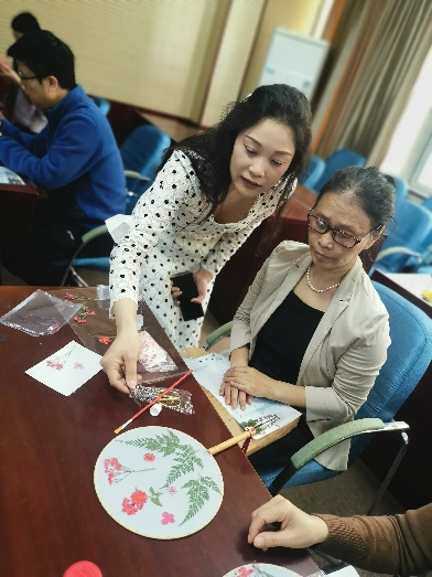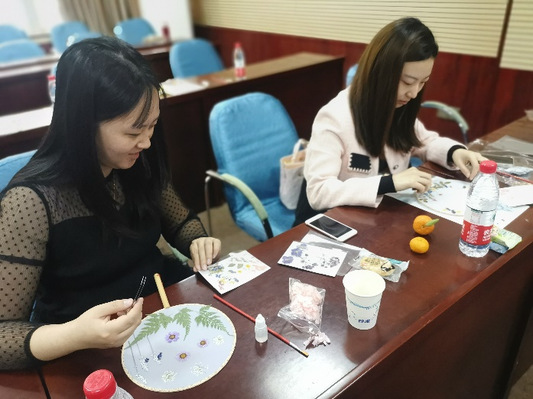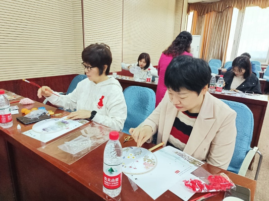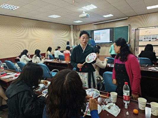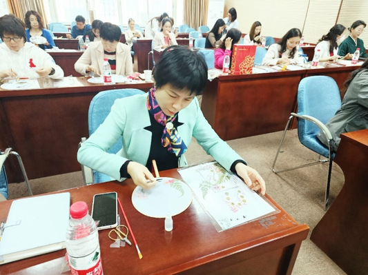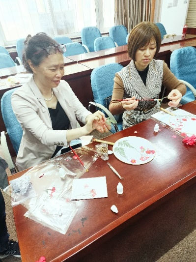 教职工仔细聆听学习压花扇技巧