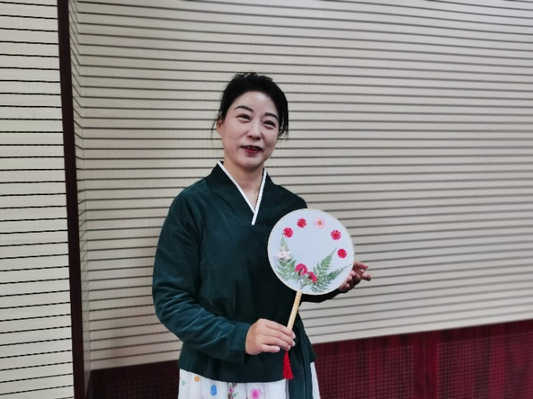 老师穿着汉服手拿团扇