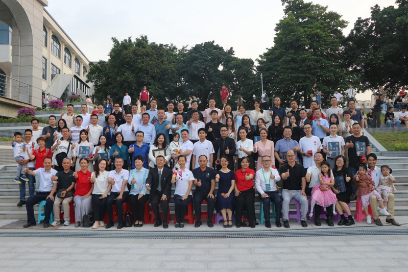最后,与会领导师生校友到钟楼前广场合影留念并敲响铜钟,本次仪式圆满结束。