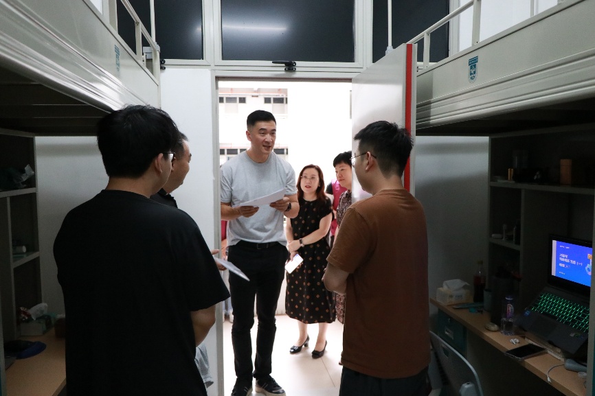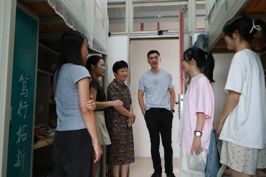 下午,法学院党委书记陈静、院长赵景琛、副院长刘薇、研究生辅导员老师刘高强、周星帆以及24级党团学代表一行走访了新生宿舍,与同学们面对面交流,并表达了对新同学真挚的欢迎与美好祝愿。