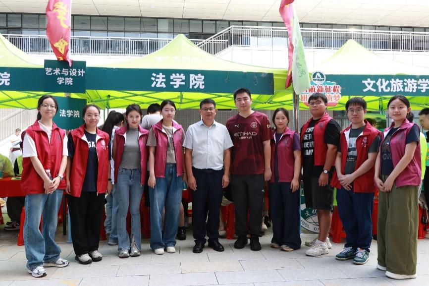 新葡的京集团35222vip副校长鲁晓明莅临迎新现场,对新葡的京集团35222vip志愿者们有序的迎新工作以及暖心服务给予充分肯定。